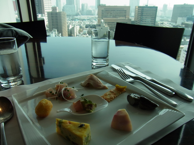 東京タワーと汐留のビル群を眺めつつ