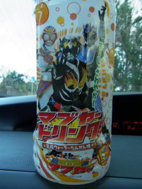 沖縄限定の変なキャラクターのドリンク飲みながら