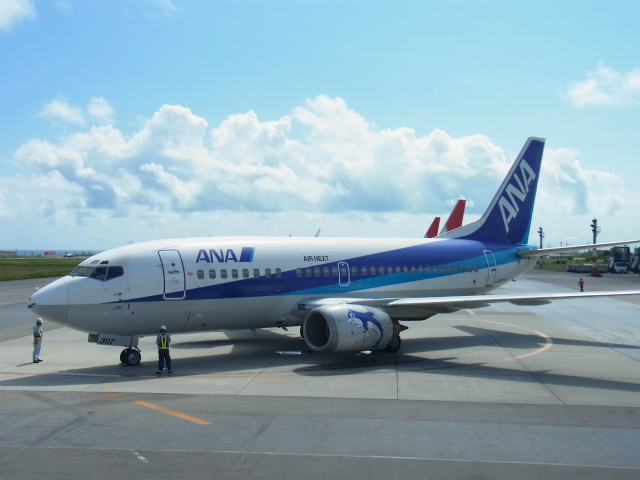 行きの飛行機はB747